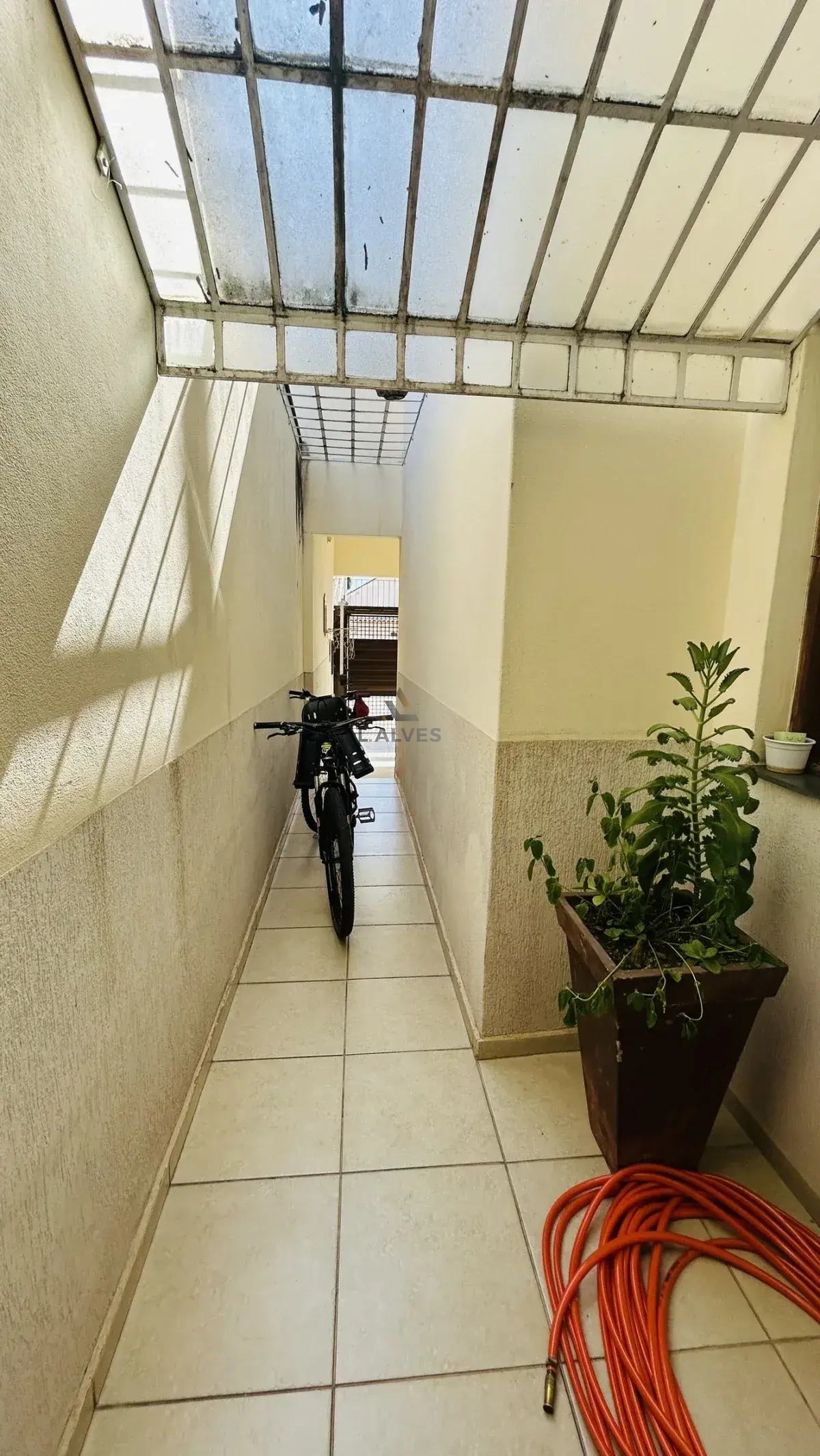 Quintal: espaçoso, com ducha e corredor de acesso lateral para a garagem, garantindo um acesso independente para suas visitas.
